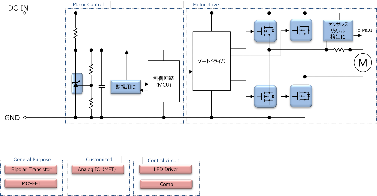 ・ブラシ付きDCモーターセンサレスリップル検出IC