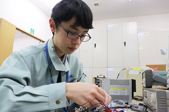 私が在籍していた電子工学科の専門科目のなかで、トランジスタやICなどについての授業を受けており、そこで習ったことの活用、もしくは延長線上といえるようなものを組み合わせた業務内容なので、学生時代に習ったことを大きく活かせていると思います。