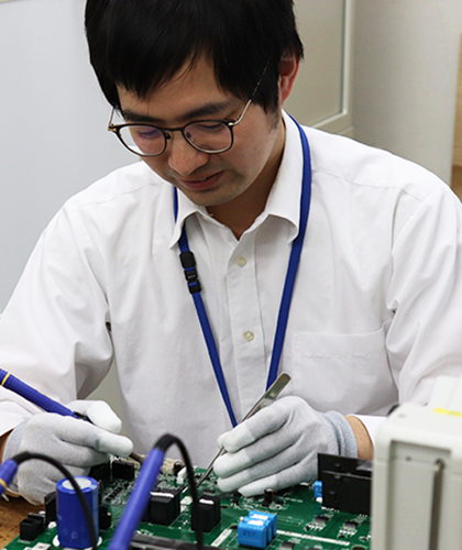 ディスクリート製品の新技術開発、新生産ラインの構築、既存生産の改良などを行い、高生産性かつ低コストのものづくりを行えるような仕組みづくり、課題解決を行っております。その中で私は、材料の低コスト化の実現のための直材変更評価と生産性向上の一環として、新規設備の立上げ評価を担当しております。